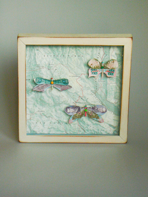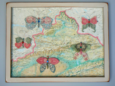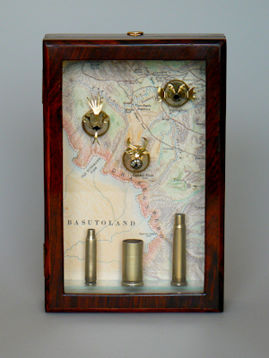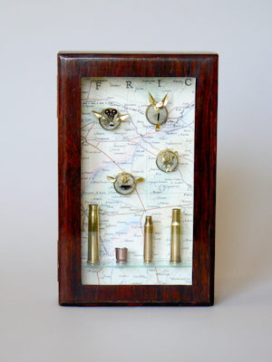 My boxes recreate the feel of these display cases. The artefacts and the maps I use are carefully chosen to convey not just a geographical distance but also temporal.