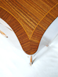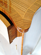 The resulting cabinet was constructed principally in American Black Walnut, whilst the carved onion motif in Cherry Wood referenced the Arts and Crafts Onion Pattern wallpaper in orange. Its dimensions reflected the narrowness of the hallway for which it was destined, as did the avoidance of protruding door and drawer pulls.